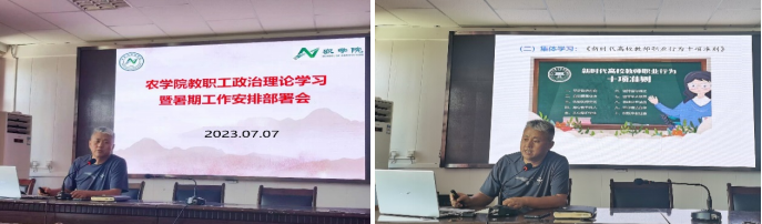 会上,葛志军书记首先开展了师德师风教育,领学了新时代高校教师职业行为十项准则。葛志军重点强调了新时代对广大教师落实立德树人根本任务提出的新的更高要求,希望广大教师要增强责任感、使命感、荣誉感,规范职业行为,明确师德底线,努力成为有理想信念、有道德情操、有扎实学识、有仁爱之心的好老师。