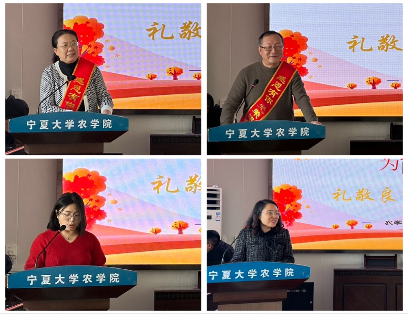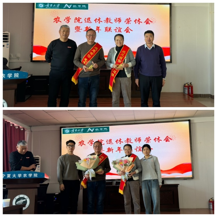荣休仪式由葛志军书记主持。李培富院长代表学院向退休教师代晓华和于大华颁发荣休纪念牌,新进青年博士郭文慧、隋宗明向两位老师献花,并致以崇高的敬意。随后,教师代表李荣、刘晓君回顾了两位荣休教师的教学历程,以及他们对学院教育事业发展和人才培养做出的贡献。于大华老师表示,感谢学院举办这样一场温馨而隆重的荣休仪式,也感谢学院领导、同事、朋友和学生们的祝福。代晓华老师表达了对学院的不舍之情,祝愿学院各项事业取得蓬勃发展,并勉励青年教师恪守“农为邦本、学至行先”的院训,积极为学院高质量发展添砖加瓦。
