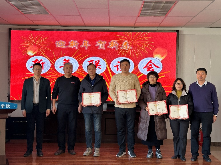 随后,葛志军书记、李培富院长、王锐副院长向院级考核优秀教师车志军、李昱龙、王西娜、李惠霞颁发证书。