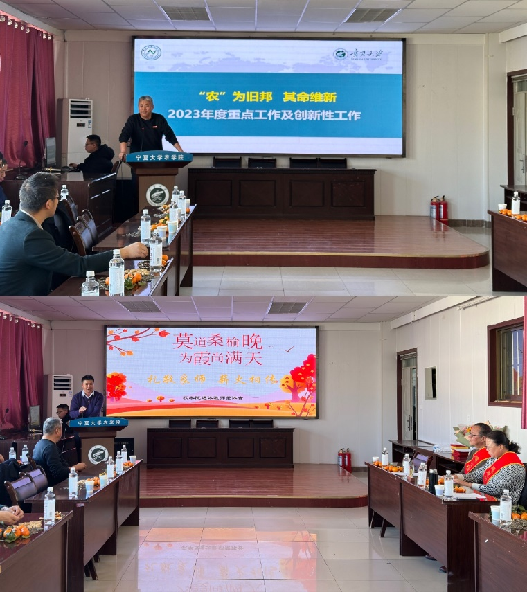 在新年联谊会上,葛志军首先总结了学院2023年工作亮点和2024年重点计划。他指出,在全院各位老师的共同努力下,学院出色地完成了党建思政工作、学科学位点建设和科学研究等基础工作,在师资培育与引进、创新团队建设、对外合作交流、社会服务等方面都取得了好成绩。2024年,学院将紧密围绕国家粮食安全战略、以“双一流”建设和学院高质量发展为目标,坚持落实立德树人根本任务,推进“三全育人”,进一步凝练学科方向,加强科学研究和团队建设,主动融入地方社会经济发展,服务自治区“六特”产业,为农业强国建设和自治区现代农业发展贡献力量!