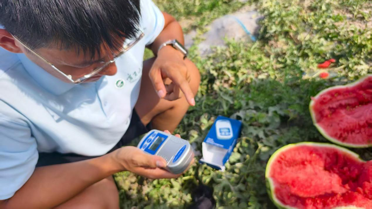 香山是全国四大知名硒砂瓜核心产区之一,当地“压砂栽培”技术虽能保墒抗旱、补充天然矿物质,但如何通过科学手段进一步提升产量与品质,仍是瓜农亟待解决的难题。实践团队抵达首日,便携带土壤检测仪、便携式糖度计等专业设备投入工作。