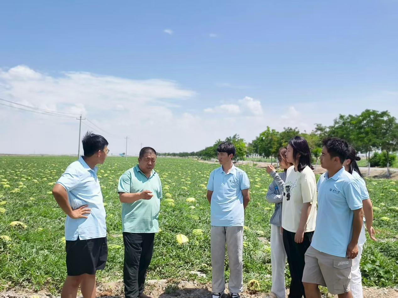 在瓜田中,农学专业学生乔丽佳通过检测发现土壤有机质含量偏低,随即向带队教授吴宏亮请教。“墒情正常,但需每亩增施50公斤腐熟羊粪,配合微生物菌剂改善土壤结构。”吴教授的现场指导引来瓜农围观,种植户马建国捧着20斤重的硒砂瓜感慨:“专家来了,咱种瓜更有底气了!”