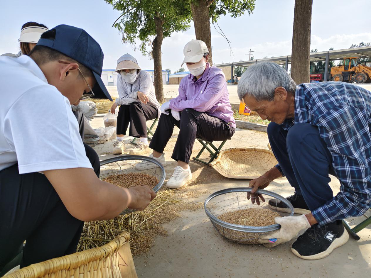 小麦育种周期长、要求高、难度大,需长期坚守田间。成熟期是小麦育种的关键阶段,田间工作包括性状考察、选种、收获脱粒及考种等重要环节,多数需在室外完成,受高温、降雨及干热风等自然因素影响大,可谓时间紧、任务重。每天清晨,露水未消,数十名党员师生便蹲守田间地头,对上万份育种材料,依据熟期、整齐度等农艺性状逐一比较鉴定。工作单调琐碎、量大,需耐心、细心和恒心,磨砺着师生的心智与毅力。