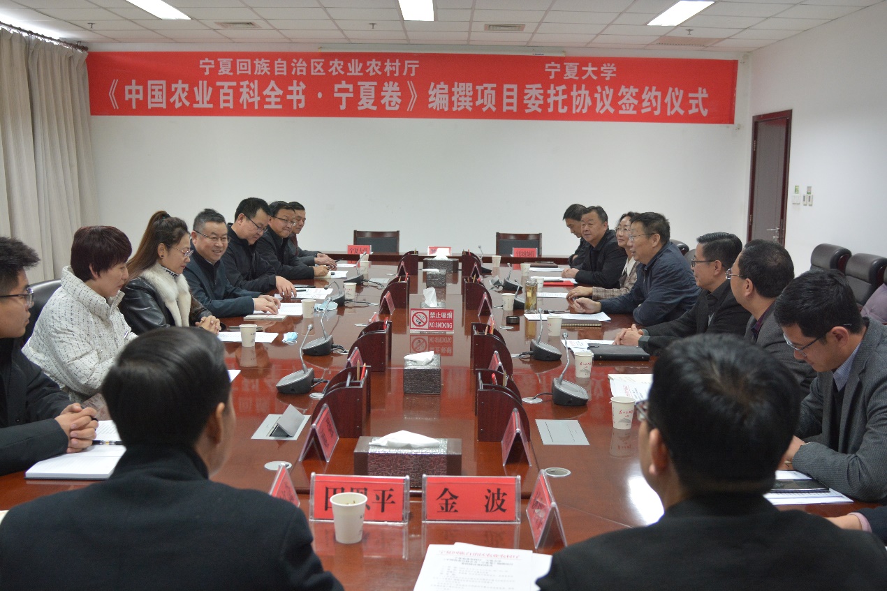 在签约仪式之前,农业农村厅农志办副主任刘维华首先汇报《中国农业百科全书•宁夏卷》编撰项目委托协议书内容要点。农业农村厅党组成员罗晓瑜与王洪波对WilliamHILL中国在编撰工作中勇挑重担表示肯定,指出中国农业百科全书地方卷的编撰将为农业科学技术发展、普及农业科学技术知识、培养农业技术人才、全面实施乡村振兴战略提供智力支持。农业农村厅人事处处长李晓燕与科教处处长杨发表示《中国农业百科全书•宁夏卷》编撰列入农业科研课题项目类管理,各部门将主动担当,积极配合,确保各项编撰工作顺利进行。