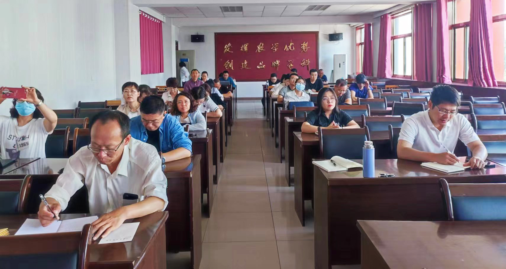 在第7次教职工政治理论学习中,党总支书记葛志军领学了习近平总书记在中共中央政治局第六次集体学习时的重要讲话精神,传达了自治区党委十三届四次全会精神。葛志军还向全体教师通报了领导班子主题教育民主生活会的开展情况,从理论学习、政治素质、能力本领、担当作为、工作作风、廉洁自律、对照习近平总书记关于树立和践行正确政绩观的重要论述以及自治区党委十三届四次全会精神、典型案例剖析八个方面总结了领导班子存在的主要问题,分析了存在问题的原因并提出了今后努力的方向。