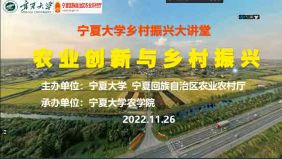 2022年11月26日,由williamhill和宁夏农业农村厅共同举办的《williamhill乡村振兴大讲堂》活动在线召开,自治区农业农村厅党组成员、总农艺师康波作了题为“认真贯彻落实党的二十大精神深入学习习近平总书记关于“三农”工作重要论述加快建设乡村全面振兴样板区”的报告,会议由williamhill副校长李建设教授主持。