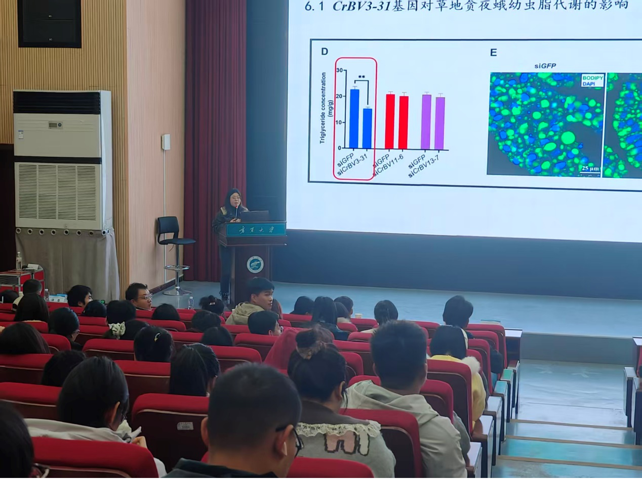 南京农业大学鲍永美教授以“水稻抗病与种子健康研究”、西北农林科技大学李贤博士后以“螟蛉盘绒茧蜂多分DNA病毒对草地贪夜蛾幼虫脂代谢的调控作用研究”做了分论坛主旨报告。