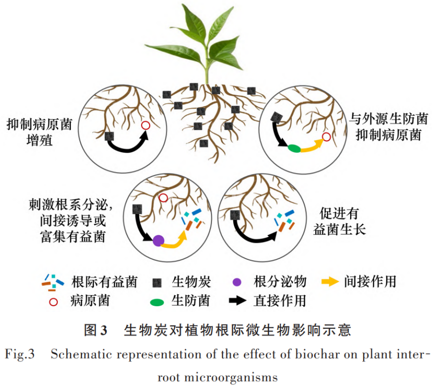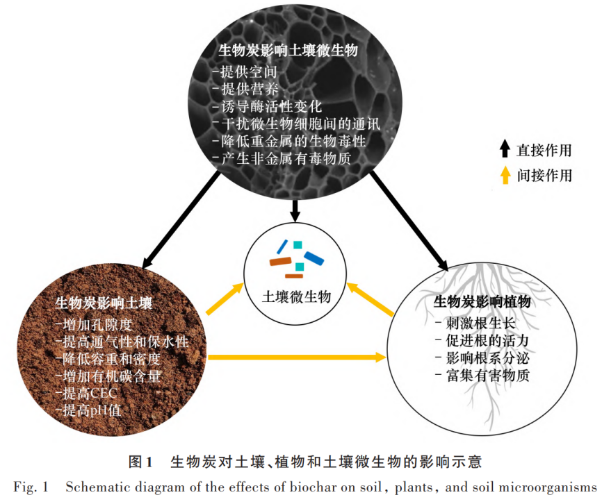 生物炭因具备提高耕地土壤肥力、促进土壤碳封存和土壤污染物吸附等功能而备受关注。土壤微生物在维持土壤结构、营养循环、生态平衡和植物健康方面发挥重要作用。添加生物炭作用于耕地土壤和植物,其复杂关系网中都有土壤微生物的参与。
