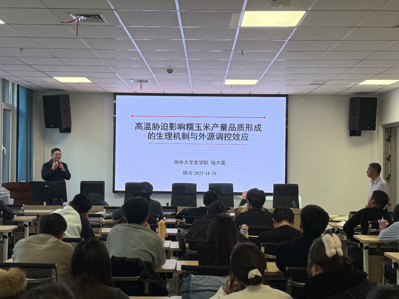 交流期间,两位专家分别带来两场高水平学术报告。陆大雷教授以“高温胁迫影响糯玉米产量品质形成的生理机制与外源调控效应”为题,系统阐述了高温胁迫对糯玉米生长发育的关键影响,深入剖析了产量形成与品质调控的内在生理机制,并结合最新研究成果,提出了切实可行的外源调控技术途径,为我国南方高温地区糯玉米优质高产栽培提供了重要理论和技术参考。