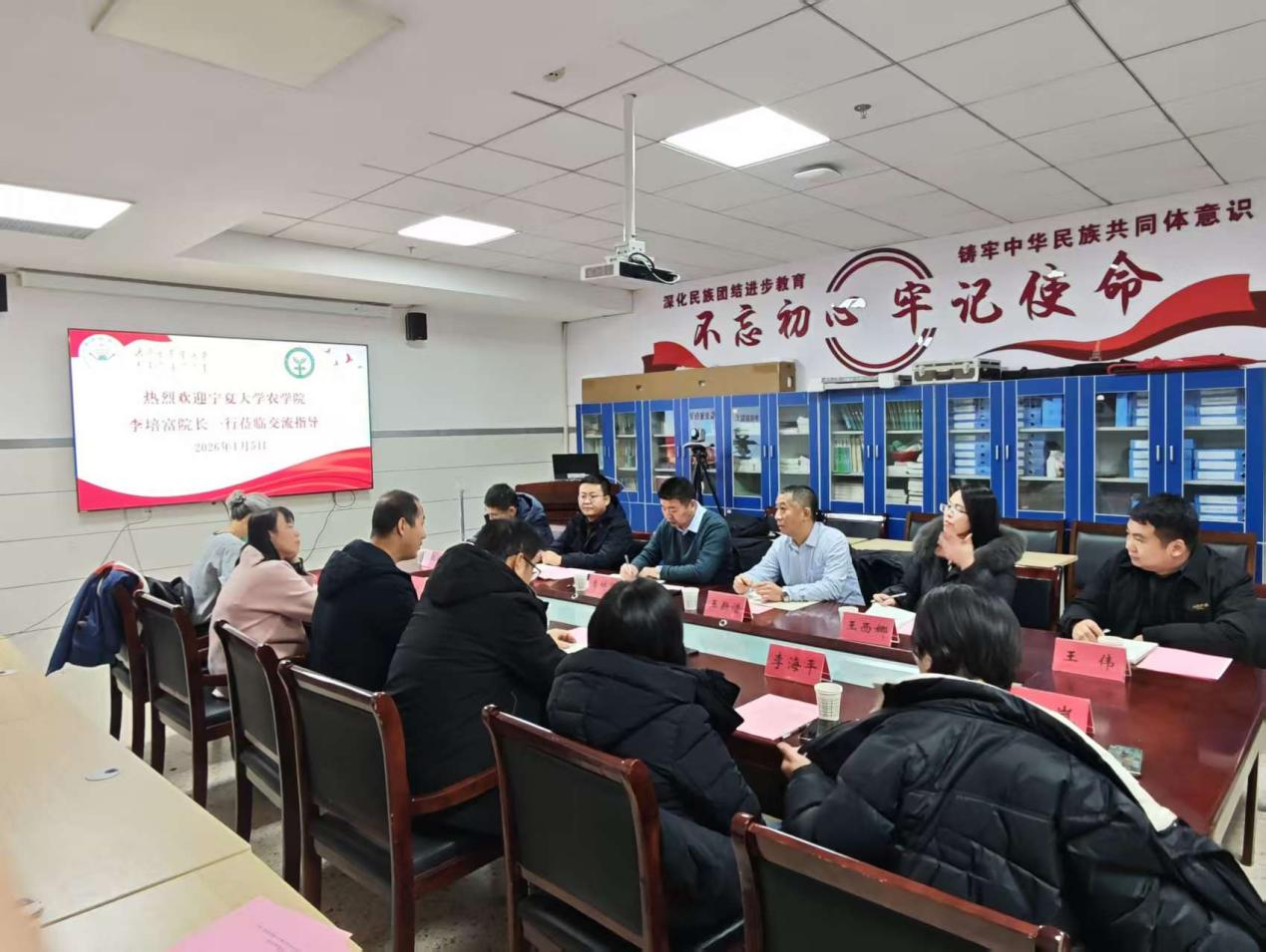 在资源与环境学院,院长李海港介绍了学院在草原土壤资源保护、农业面源污染修复等领域的科研成果。该院完整的“本-硕-博”协同培养体系和多维度科研教学平台建设经验给考察团留下深刻印象。双方聚焦西北干旱半干旱地区农业资源高效利用与生态环境保护的共性问题,就学科交叉融合、科研项目联合申报、生态修复技术推广等议题深入探讨,希望以此次交流为契机,构建长效合作机制,共同为区域农业可持续发展提供科技支撑。